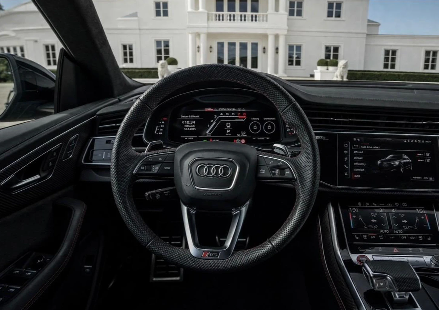 Der Audi RS Q8 ist ein Hochleistungs-SUV mit einem 4,0-Liter-V8-Biturbo-Motor, der 441 kW (600 PS) und 800 Nm Drehmoment leistet, was eine Beschleunigung von 0 auf 100 km/h in 3,8 Sekunden ermöglicht.