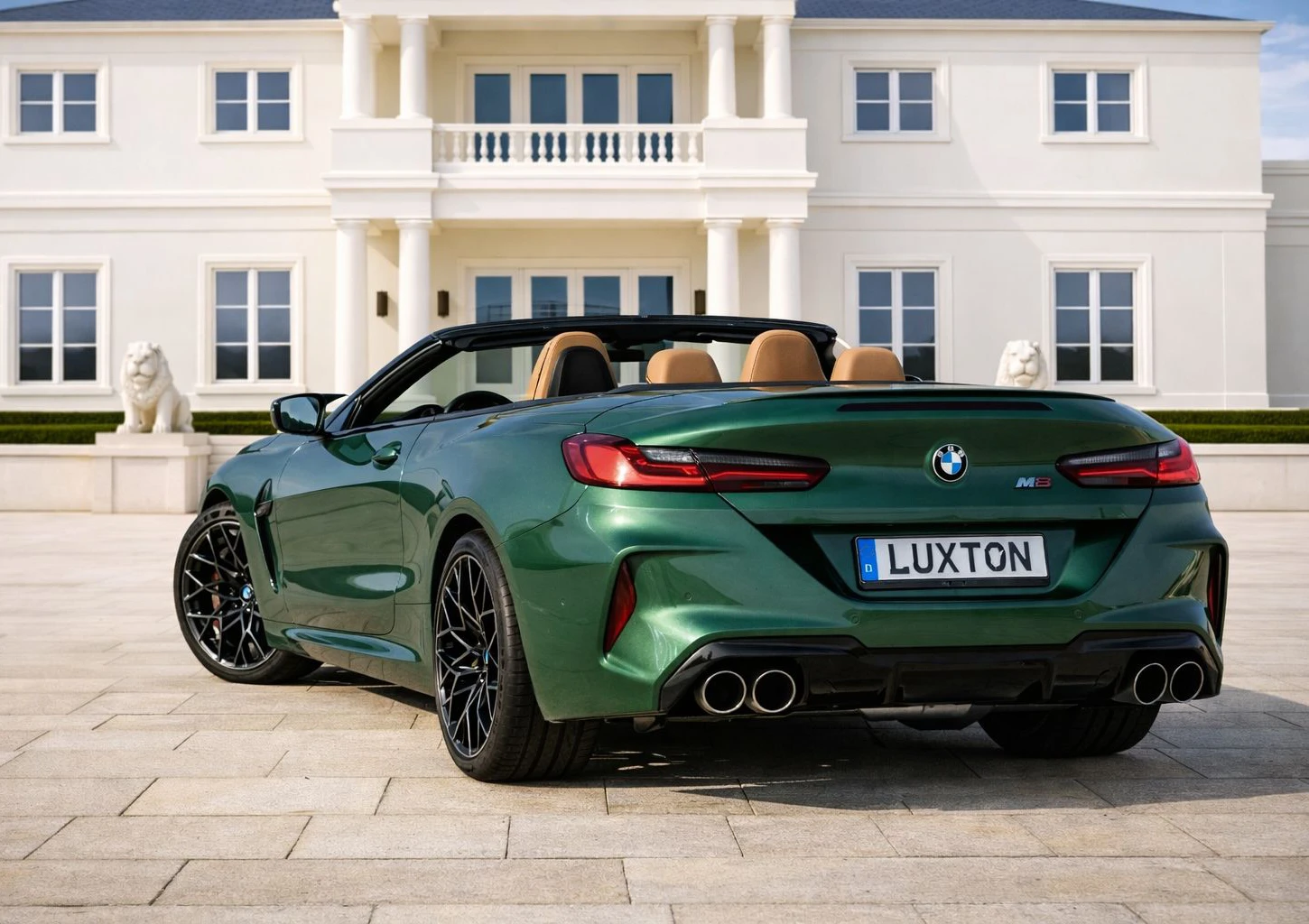Das BMW M8 Competition Cabriolet ist ein High-Performance-Luxuscabrio mit 625 PS aus einem 4,4-Liter-V8-Biturbo. Mit Allradantrieb und 8-Gang-Steptronic beschleunigt es in 3,3 Sekunden von 0 auf 100 km/h und ist serienmäßig auf 250 km/h begrenzt.